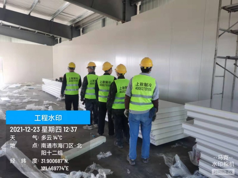 江蘇南通冷庫工程正在安裝保溫庫板