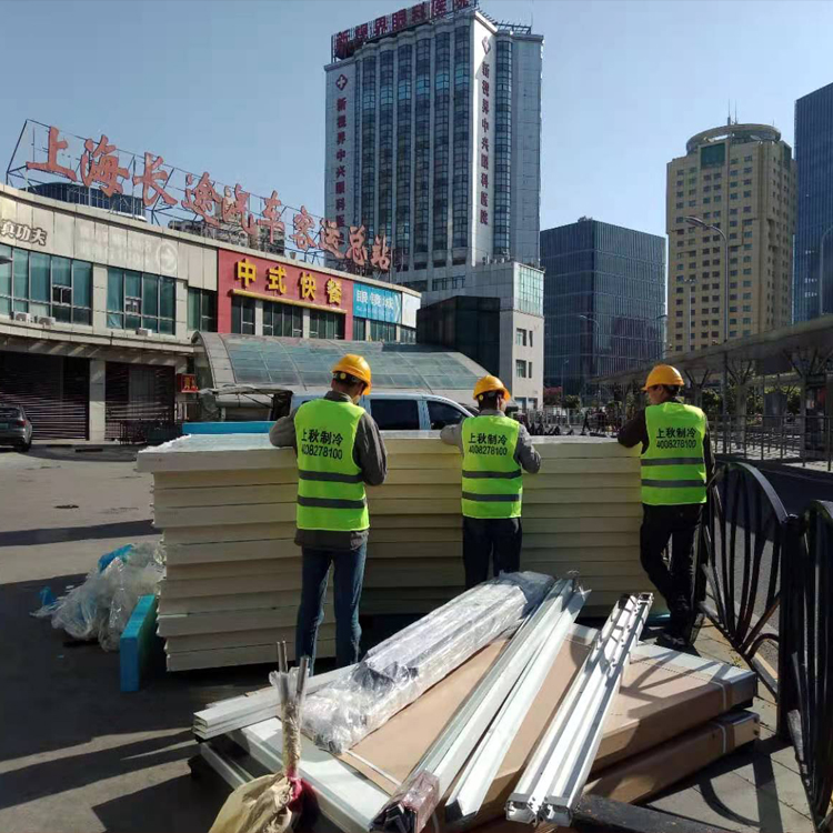 由于業(yè)主業(yè)務(wù)需求,采用常州月仙芯材B1級(jí)板組件拼裝,地面鋪設(shè)5.0mm防滑鋁板。項(xiàng)目采用艾默生谷輪渦旋風(fēng)冷一體機(jī),恒溫庫(kù)配制冷制熱風(fēng)機(jī),冷暖自控型物聯(lián)網(wǎng)電控箱。
